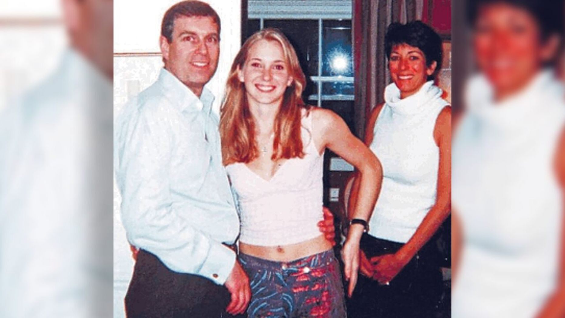 Photo from 2001 that was included in court files released last week shows Prince Andrew with his arm around the waist of 17-year-old Virginia Giuffre who says Jeffrey Epstein paid her to have sex with the prince. Andrew has denied the charges. In the background is Epstein’s girlfriend Ghislaine Maxwell.