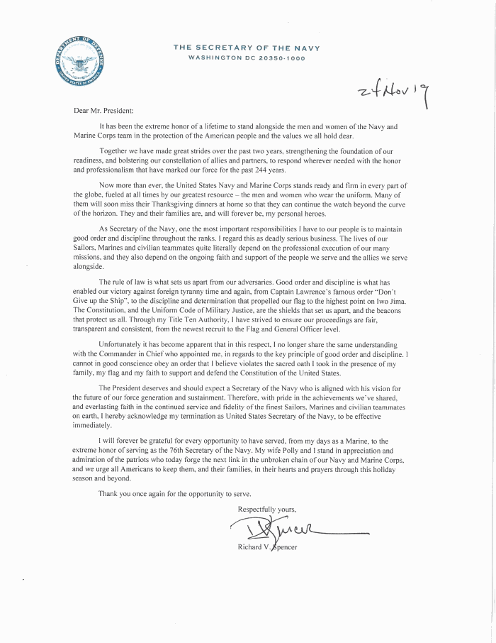 Navy Secretary Spencer fired for undermining military justice system in Gallagher Navy SEAL case