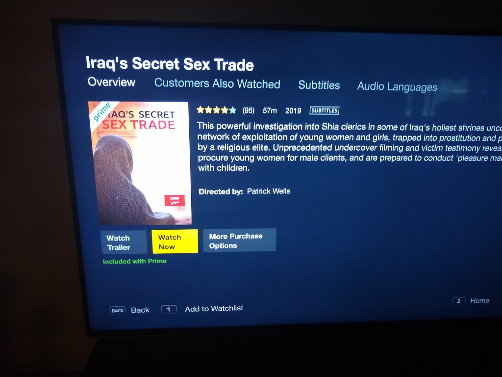 I watch the very disturbing documentary on Amazon about Iraq’s secret sex trade, performed and #justified by some of their clerics/holy men.