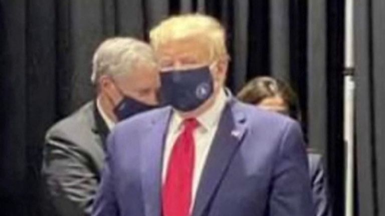 Trump brings mask to Ford, says he doesn’t ‘want to give the press the #pleasure of seeing’ him wear it