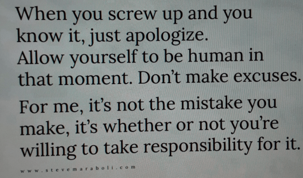 Just think of the millions of people out there that have made a mistake and are not willing to say; I made a mistake and I am sorry. It is not that difficult. If this became part of everyone’s DNA, the world would be a much better place. I have done it hundreds of times.