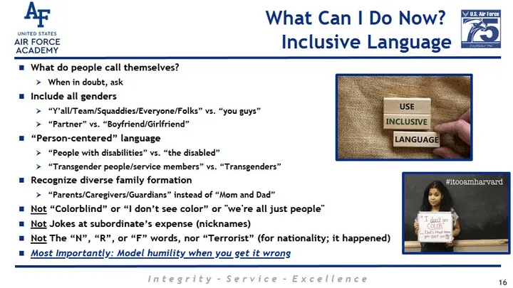 Air Force Academy also tells cadets to be ‘Color Conscious’ instead of ‘Colorblind’