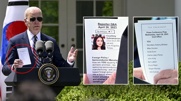Biden caught with crib notes detailing reporter’s question prior to calling on her during press conference
